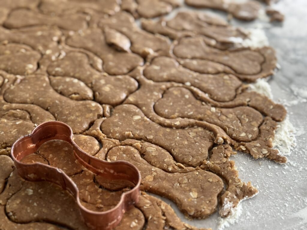 - Mix all ingredients together well. Roll out onto a floured surface to 1/4″ thickness. Using a cookie cutter, cut into shapes of your choosing.