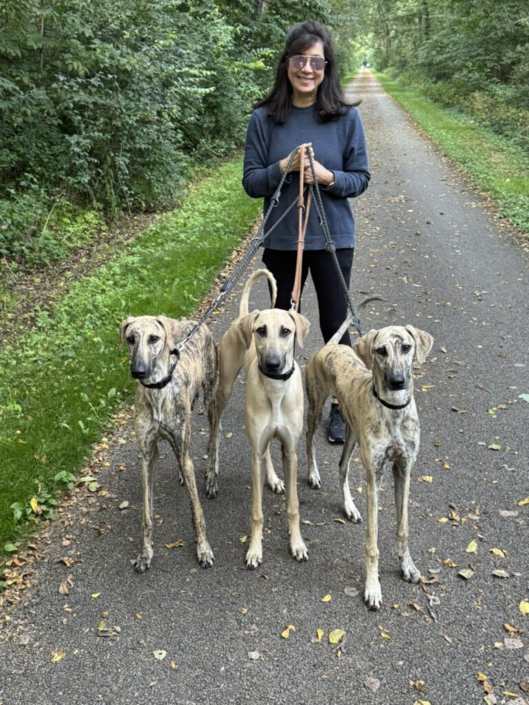 My Sloughis often accompany me on my walks, adding interest and excitement by chasing deer, rabbits, squirrels and the occasional biker. (This has not been beneficial to my elbow and quadriceps injuries.) Needless to say, their adventures leave them hungry and in need of snacks, and they do not have blood sugar issues, so sourdough discard biscuits for Sloughis evolved quite naturally. Toute en profite!